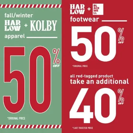 Buy 1 Get 1 50% off Harlow and Kolby Apparel!